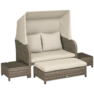 Outsunny Ensemble salon de jardin 3 places 3 pièces - canapé 2 places, pouf, coffre rangement - 4 coussins inclus - résine tressée imitation rotin gris