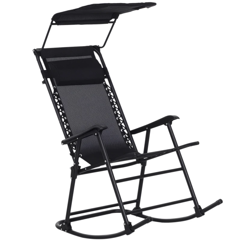 Outsunny Fauteuil à Bascule Rocking Chair Pliable de Jardin dim. 105L x 64l x 125H cm tétière + Pare-Soleil Inclus Acier époxy textilène Noir(m-7)