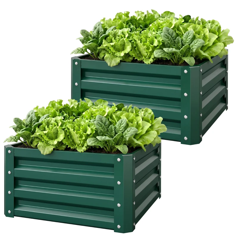 Outsunny Lot de 2 jardinières surélevées, carre potager de jardin pour légumes, fleurs, acier galvanisé 60 x 60 x 30,5 cm, vert