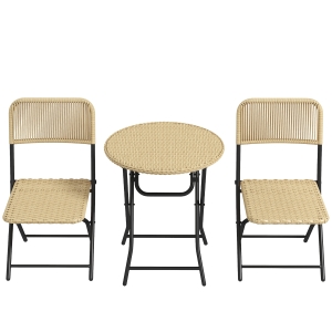 Outsunny Ensemble salon de jardin 2 places table ronde pliable plateau verre trempé chaises pliantes résine tressée chocolat