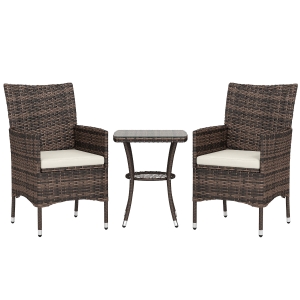 Outsunny Salon de jardin ensemble 3 pièces avec 1 table et 2 fauteuils 4 coussins table en composite plateau aspect bois noir