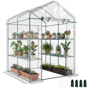 Outsunny Serre de jardin en aluminium polycarbonate, serre avec fenêtres supérieures réglables, porte battante, abri extérieur résistant aux intempéries pour plante fleur, 303x183x195 cm, transparent