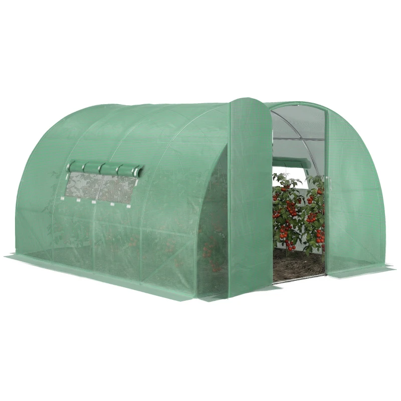 Outsunny Serre de Jardin Tunnel 12 m² 4L x 3l x 2H m Acier galvanisé renforcé + PE Haute densité fenêtres Porte Vert