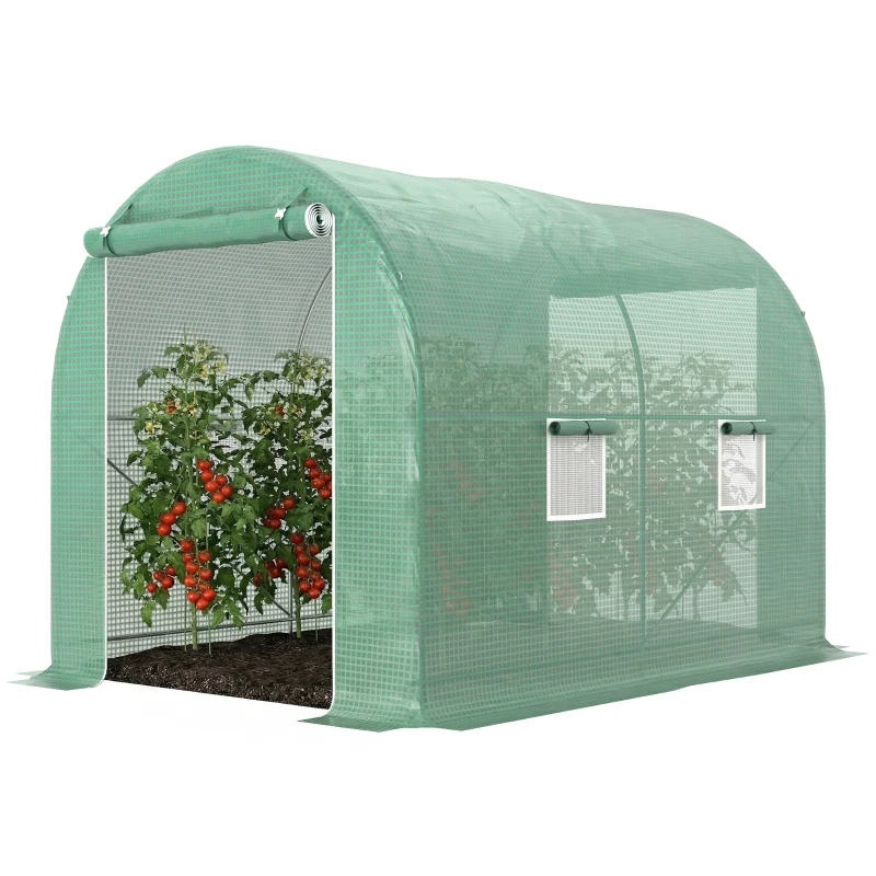 Outsunny Serre de Jardin Tunnel Surface Sol 6 m² châssis Tubulaire renforcé Porte zippée 4 fenêtres enroulables Vert