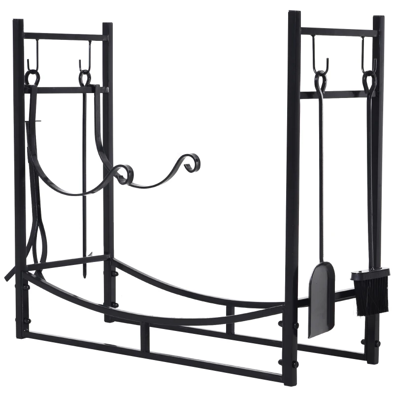 Outsunny Porte bûches - Range bûches Serviteur de cheminée - Multi Accessoires étagère bûche et Petit Bois métal Noir