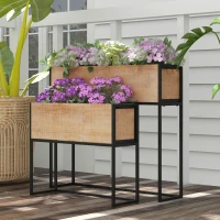 Outsunny Lot de 2 jardinières sur pieds en bois et métal 2 tailles 80 x 20 x 70 cm - 60 x 20 x 50 cm noir et naturel