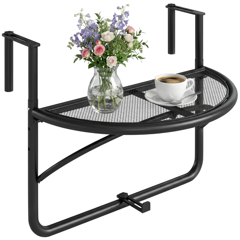 Outsunny Table Suspendue pour Balcon dim. 60L x 45l cm Hauteur réglable 3 Niveaux métal époxy Noir