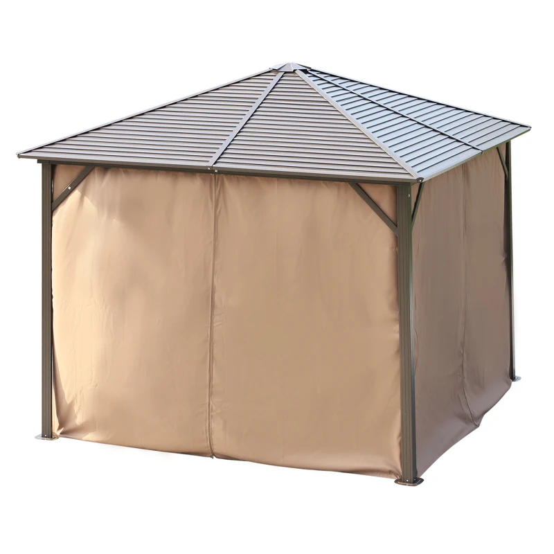 Outsunny Tonnelle pavillon de jardin rigide panneaux toit alu. et métal époxy dim. 2,98L x 2,98l x 2,6H m 4 parois latérales anti-UV 4 moustiquaires beige marron moucheté