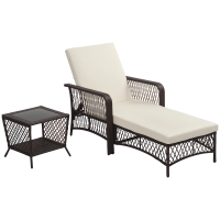 Outsunny Transat bain de soleil d'extérieur avec table d'appoint et matelas - dossier inclinable - résine tressée - marron et crème