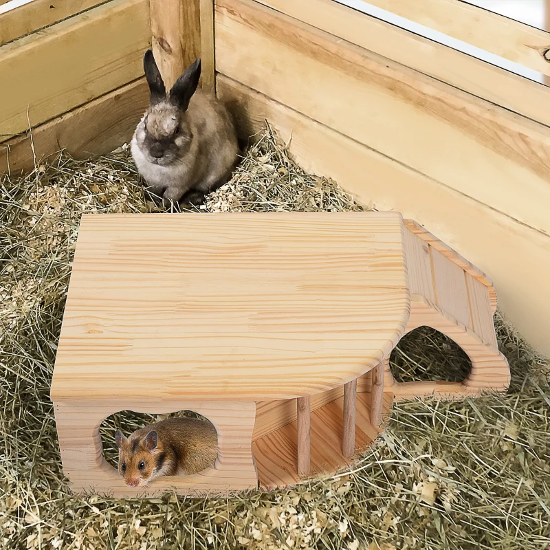 PawHut Maisonnette pour rongeurs abri pour rongeurs 2 entrées rampe et espace foin dim. 60L x 37l x 19H cm bois naturel sapin