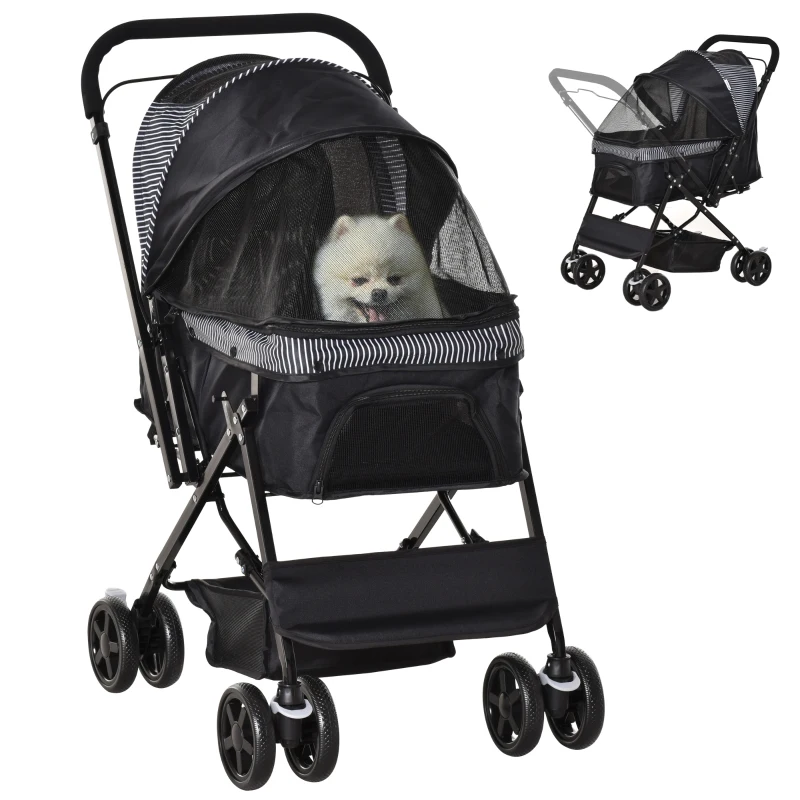 PawHut Poussette pour chien animaux de compagnie pliable 4 roues EVA guidon réglable panier 76,5 x 52 x 95 cm