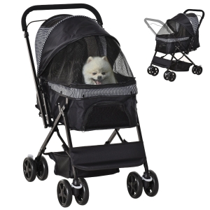 PawHut Poussette pour chiens 3 en 1 pliable panier de transport avec poignée amovible coussin 76 x 51 x 100 cm gris