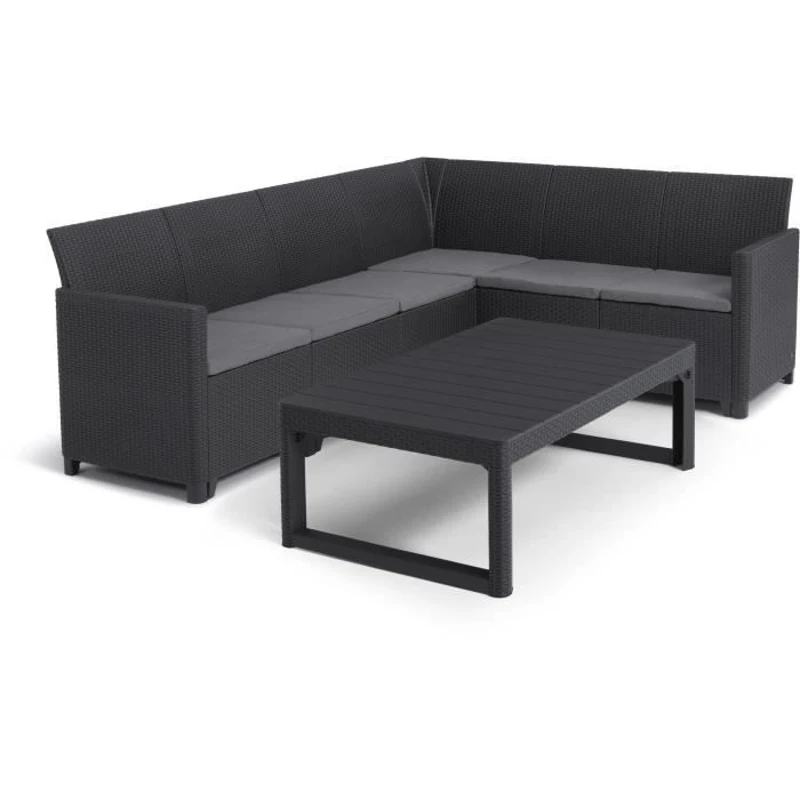 Salon de jardin avec table basse 2 en 1 - en résine - Allibert by KETER - 6 personnes - SanRemo - Gris graphite