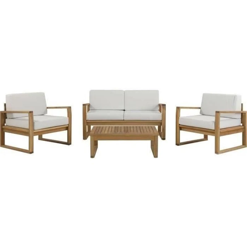Salon de jardin en bois d'Acacia FSC - PALAWAN - 4 personnes - Coussins gris perle