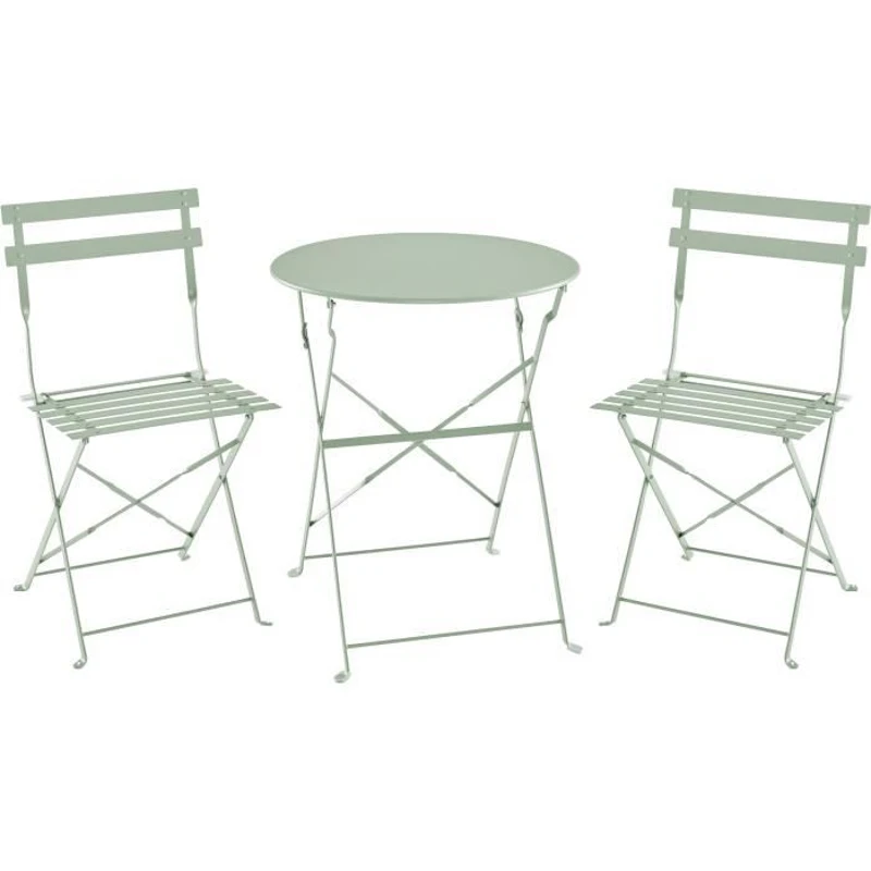 Set bistrot 2 personnes - Table ronde pliante 60 cm + 2 chaises - Acier thermolaqué - Vert