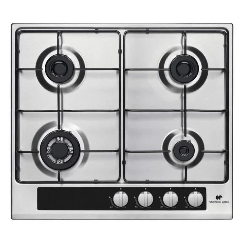 Cette table de cuisson gaz CONTINENTAL EDISON dispose de 4 foyers dont 1 triple couronne pour une puissance optimale. La surface en acier inoxydable et la couleur inox apportent une touche moderne a votre cuisine. Les commandes sont situées sur le dessus pour un acces facile. Les dimensions de la table sont 58 x 51,5 x 4,2 cm (L x P x H) pour un poids de 9,5 kg.