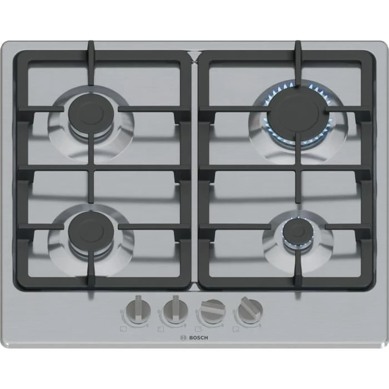 Table de cuisson a gaz - BOSCH Série 4 - 4 foyers - 52 x 58,2 x 4,5 cm - PGP6B5K90 - Inox