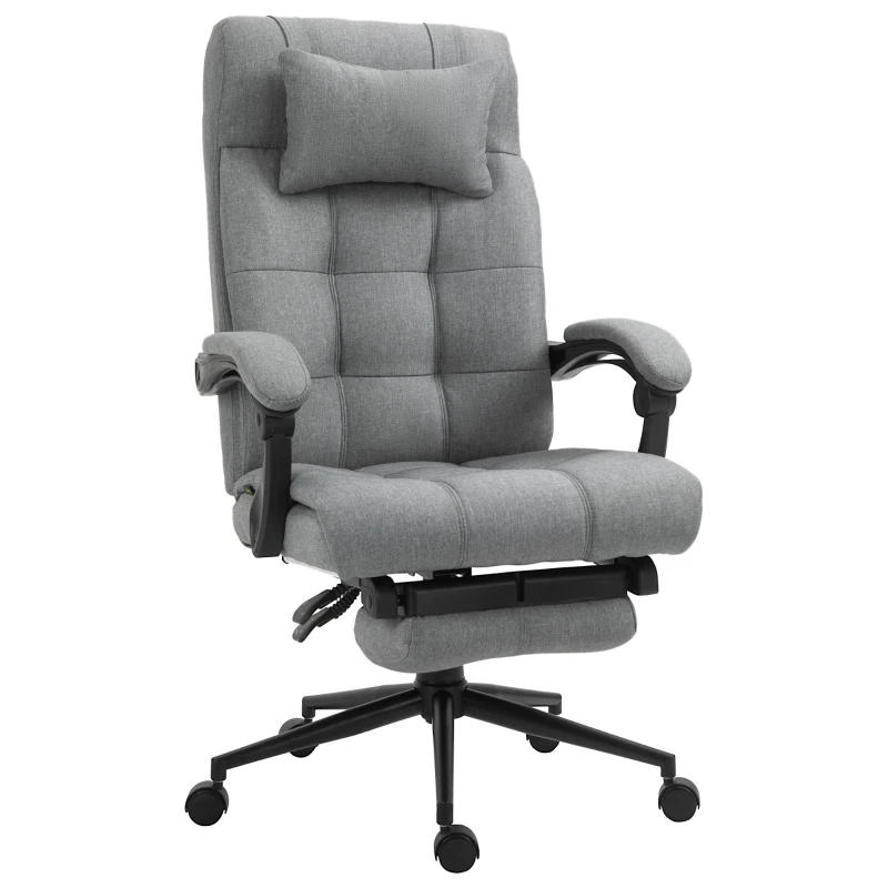 Vinsetto Fauteuil de bureau chaise de travail dossier hauteur réglable pivotant 360° repose-pied appui-tête lin rembourrage mousse 66l x 76P x 112-120H cm gris clair noir