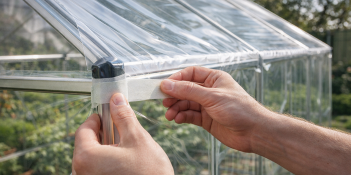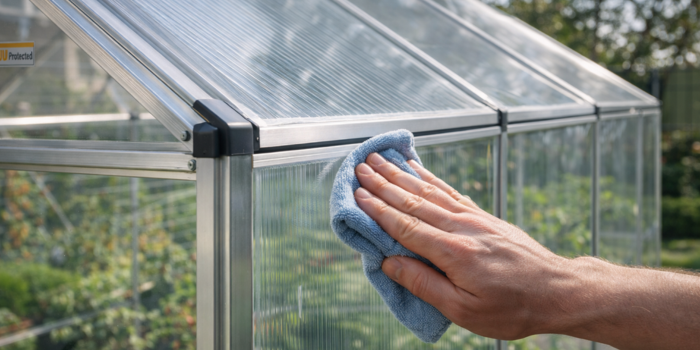 Un entretien approprié permet de prolonger considérablement la durée de vie de vos matériaux de serre. Pour les films souples, il est recommandé d’appliquer une bande de protection sur les points de contact avec la structure, d'éviter toute tension excessive lors de la pose, de prévoir un ombrage lors des pics d'ensoleillement estival et de vérifier la tension durant l’hiver ; le principe fondamental reste d’éviter une tension continue sur le film afin de préserver sa souplesse.