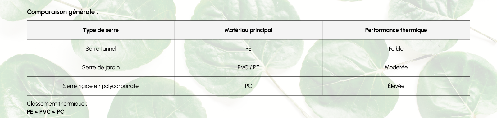 Les performances d’isolation d’une serre dépendent fortement des propriétés thermiques des matériaux de couverture.